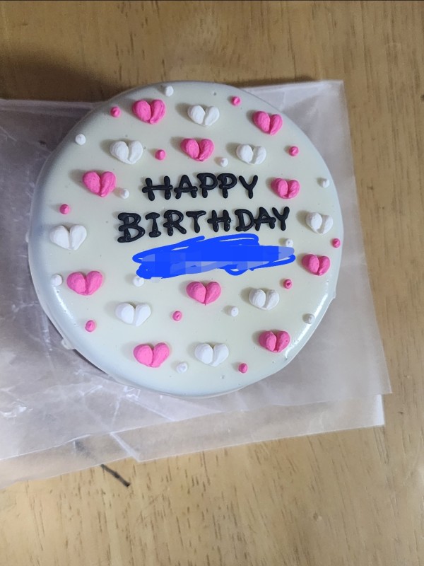 推しの誕生日ケーキとして購入しました。が、想像してた色では無く薄めだったのが残念です。かわいいんですけどね。味は美味しいんですけど、1番小さいサイズで二人で食べましたが途中で飽きる感じの味です。