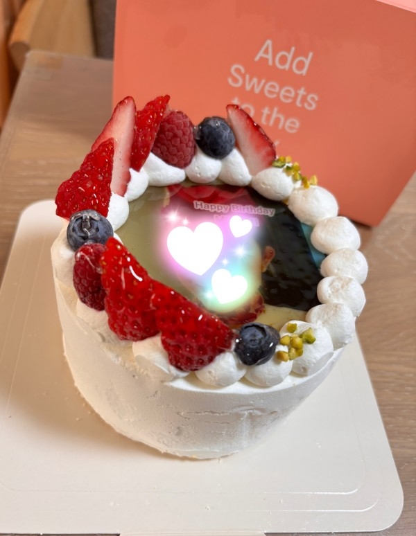 写真ケーキを頼んだのは初めてでしたが、感動的に綺麗な仕上がりで大満足です。お味も甘すぎず食べやすく、間にもイチゴがサンドされていて嬉しかったです!またリピしたいと思いました。