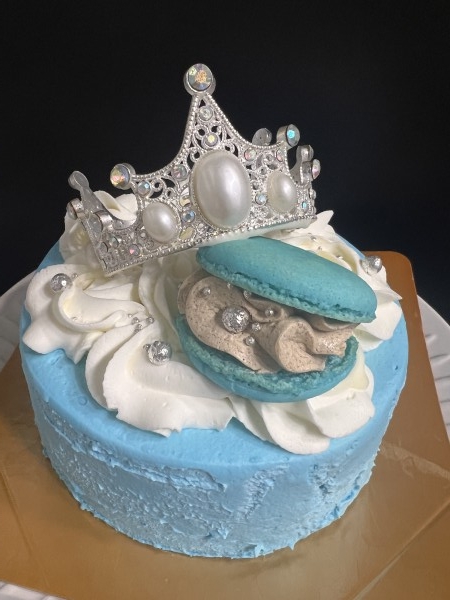 27歳の娘の誕生日に、購入しました。ティアラとマカロンが乗っていて、とっても可愛くてお姫様のようなケーキでした。色もティファニーを思わせるような綺麗な水色で、大満足でした。