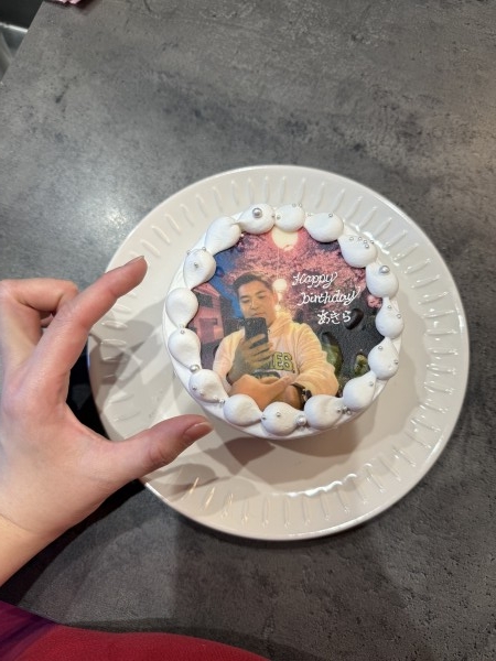 推し活友達の誕生日パーティー用のケーキとして購入しました。もちろんケーキには推しの写真!あまりにも出来が素晴らしすぎてケーキに包丁が入れられない!とは言えおいしくいただきました。ケーキもふんわりしていてクリームとのバランスもよく、挟んであるジャムが程よいアクセントになりとても美味しい。また次もお願いしたいと思っています。