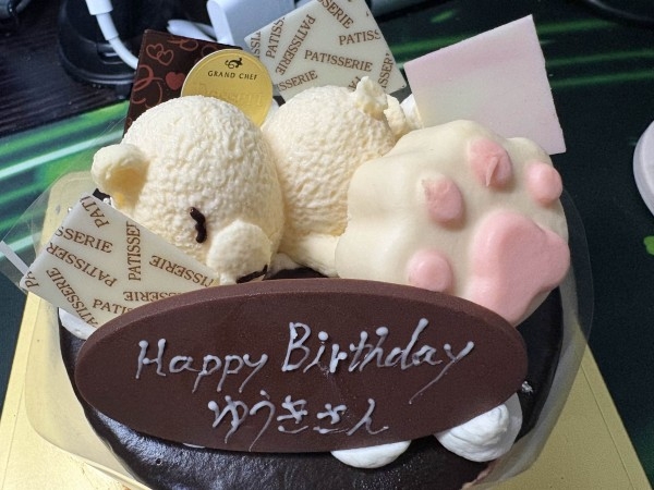 肉球🐾とシロクマが特徴的でした 肉球はぷにぷにしてて 飾りのチョコも美味しくスポンジにあるベリーも 全て美味しかったそうです。貰ったヒトがXにあげてくださったので見たヒトも可愛い!こんなケーキあるんだ!!と好評でした。 1つ残念なのは受取者が宅配屋さんのLine登録をしてたので前日にどんなケーキが来るとバレてしまったことですʕ´•㉨•`ʔ