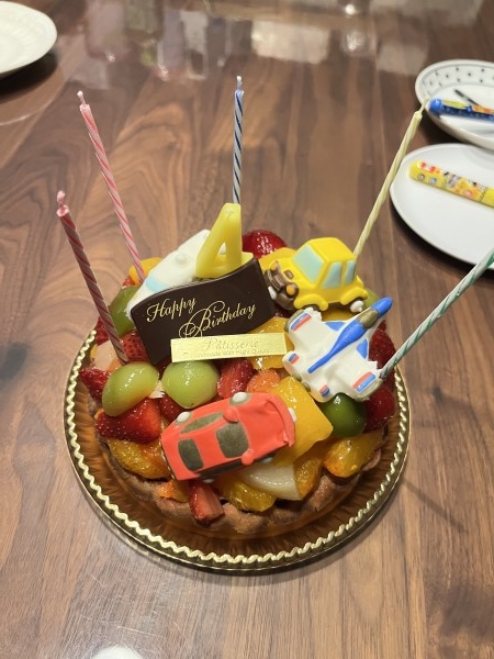 有料オプションで、砂糖菓子の「飛行機と新幹線セット」や「車セット」が付けられたり、「数字のキャンドル」「チョコプレート」など、色々選べてとても良かったです。