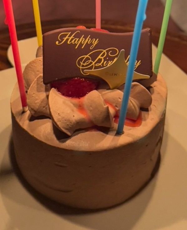 旅館の夕食の最後にサプライズでケーキをお願いしました。満腹だろうと思い、小さめを購入しましたが、お祝いするには少し見た目が小さかったです。でも、お味はとても美味しく3人満たされてました。ありがとうございました♡