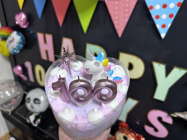 ただ注文が本当に分かりにくい。アルファベットや数字のクッキー変更可とあるが画像の見本がないので何のことだか分からない。頼んだところでドコに付けるのかも不明。カラー選択があり、よく分からずパープルにしたらパープル素材のものがなかった。ハートにメッセージ入れられたらいれてほしかった。
