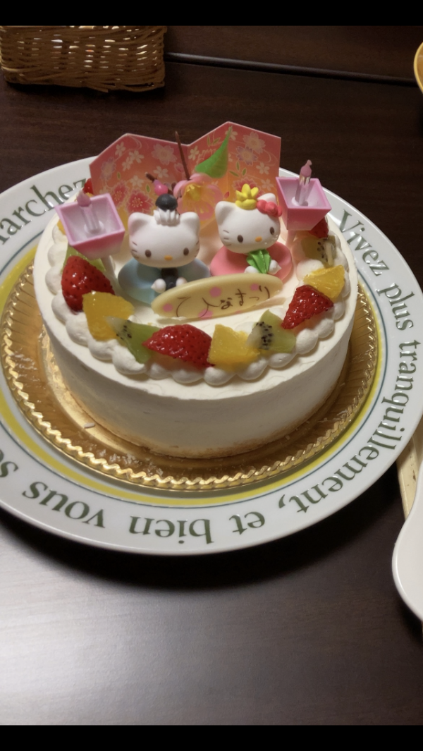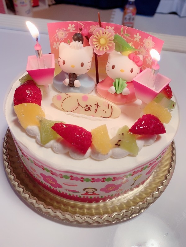 卵アレルギー用の可愛いケーキで、娘も喜んで食べてました。甘さ控えめで大人も美味しく頂きました。お雛さまキティちゃんが可愛くて写真も映えました。