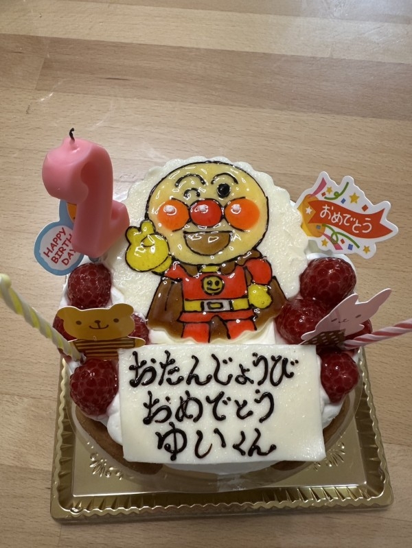 卵抜きのケーキってどんな味なんだろう?と思っていましたが、しっとりフワフワで、とても美味しかったです。とても素敵なアンパンマンのイラストに息子も大興奮でした。生まれて初めて食べるショートケーキ、「おいちい!」と頬張っていました。とてもいい思い出になりました。早速ママ友や友人にもおすすめしました。また来年もお願いしたいと思います。ありがとうございました。