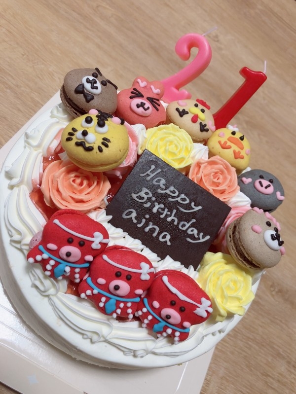 6才になるめいっこの誕生日に何かかわいいものをと思って探していてたまたま見つけたのがこのケーキでした!動物が好きなので、とても喜んでいました。マカロンは2才上の姉と2人で分けて食べたそうです。喜んでもらえてよかったです。ありがとうございました。